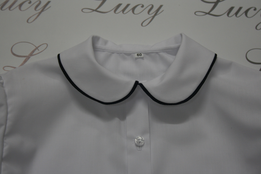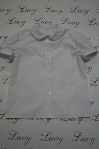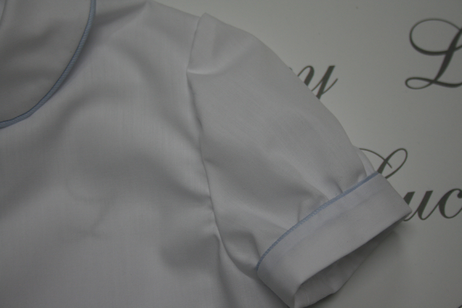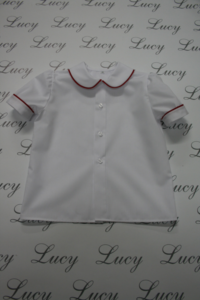 Camicietta bambino in batista bianca, manica lunga o corta, con sbiego in diversi colori al collo e ai polsi.Tessuto: batista bianca.